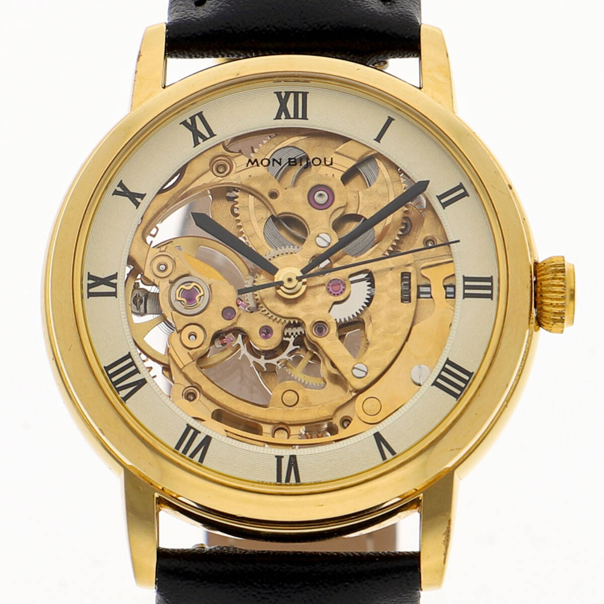 > ORIENT オリエント EQ00-A0 モンビジュ スケルトンダイヤル GP/レザー 手巻き メンズ【131411】