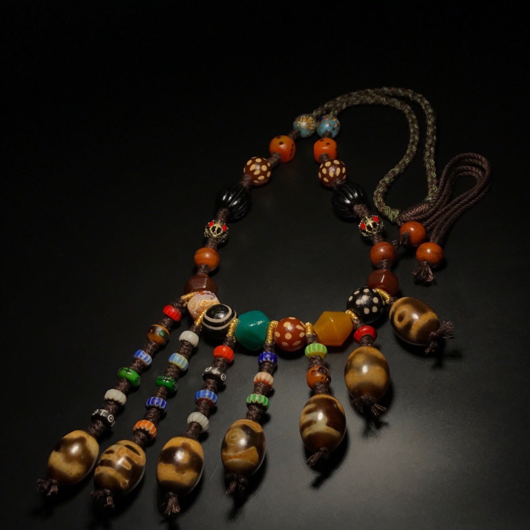 - 【超珍館蔵】瑪瑙製 細密彫 達洛天珠多寶ネックレス 根付 裝身具 古賞物 古董品 古美術品 時代物 旧家蔵出 稀少珍蔵品