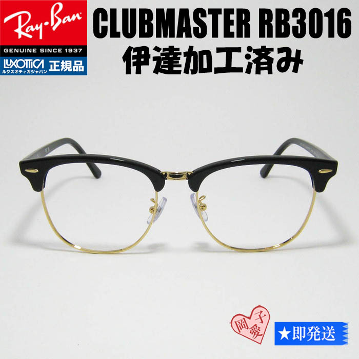 - ★49サイズ RB3016-BK-DATE★RayBan レイバン CLUBMASTER クラブマスター UVカット 伊達加工 クリア メガネ ブラック フレーム