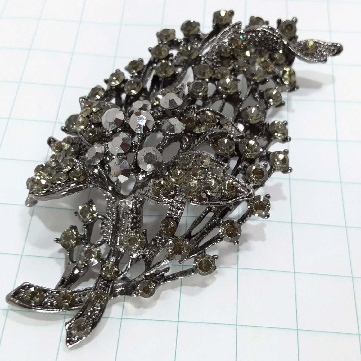 - 送料無料)ビンテージ☆ブラックラインストーン フラワーリース☆アンティーク ブローチ A30429