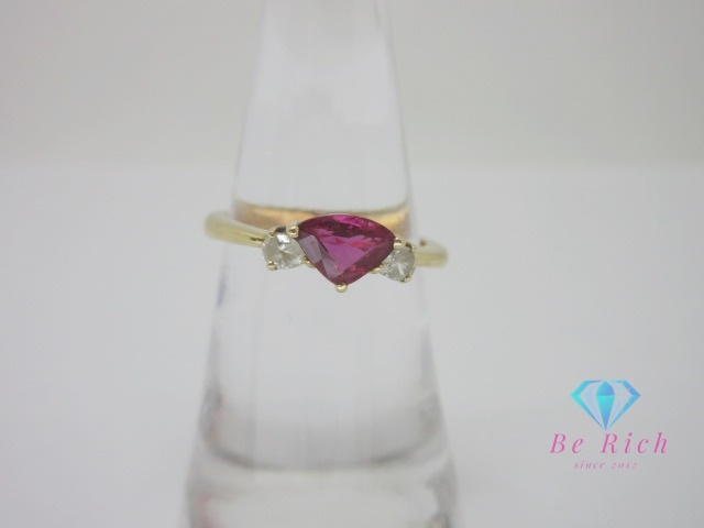 > K18 YG ルビー 0.67ct ダイヤモンド 0.20ct 付 デザイン リング 指輪 12号 18金 750 ソーティング メレ 宝石【中古】【送料無料】 th12582