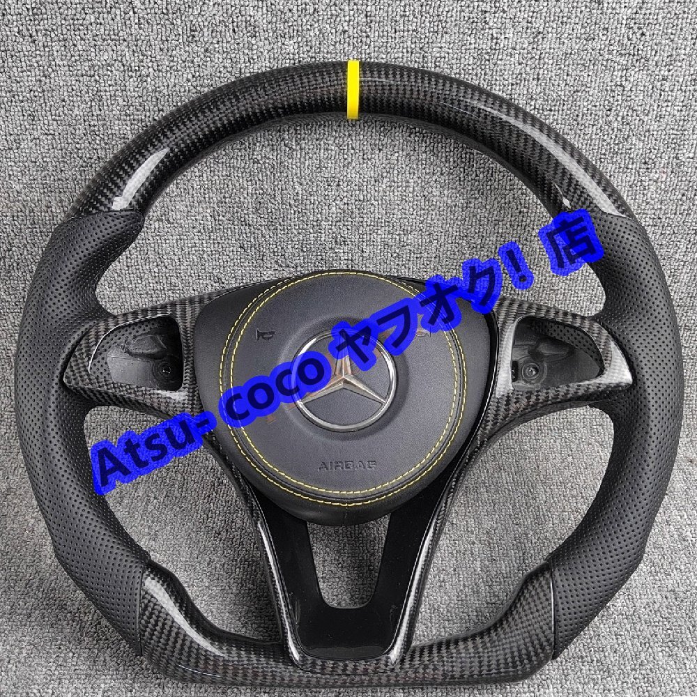 - ベンツ W218 W212 W204 W207 リアルカーボン・パンチングレザー製 ステアリング1個 スイッチカバー付く