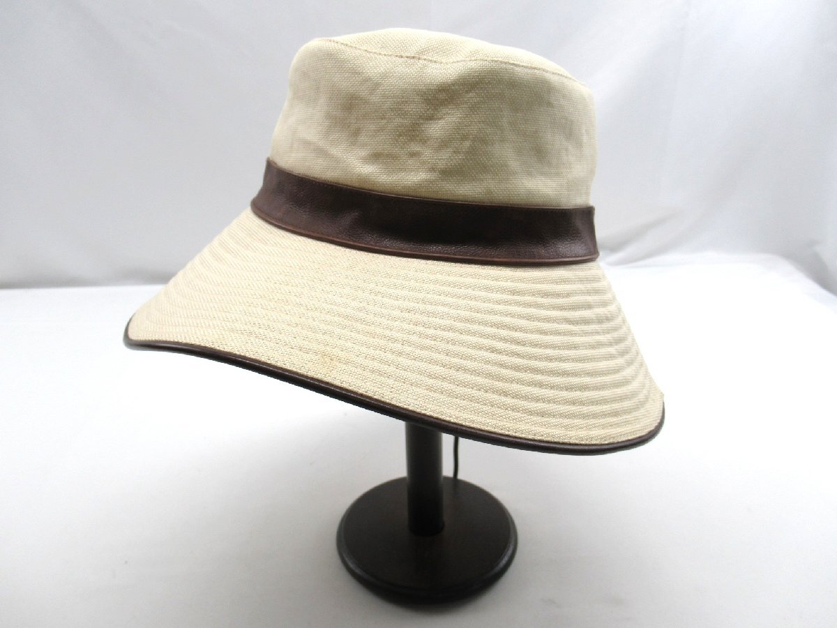 - ☆【B送900円】1914 HERMES エルメス ハット 帽子 日除け ツバ広 フランス製 リネン100% バイカラー ブラウン×ベージュ 58