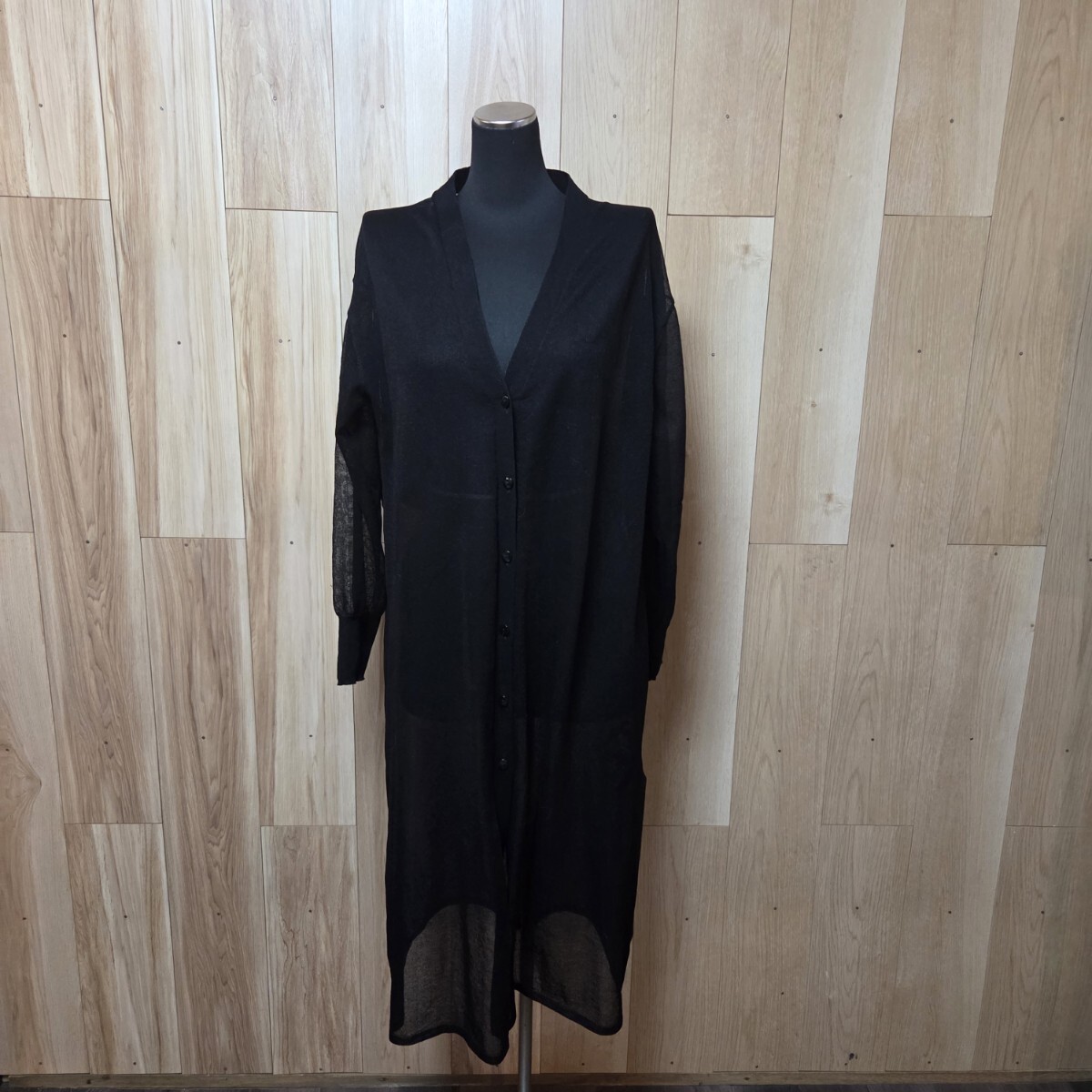 - 超美品 AN LIC AU BLUE アンリックオーブルー★ロングカーディガン 後ろフリル ブラック ショップチャンネル