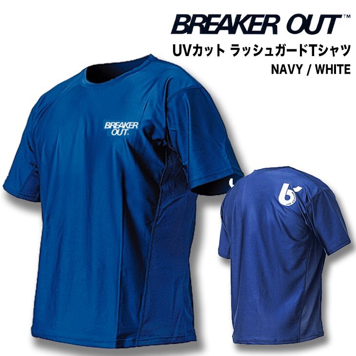 > ■BREAKER OUT■UV98%カット ラッシュガード Tシャツ [NAVY] XLサイズ/海でも街でも着られます ブレーカーアウト