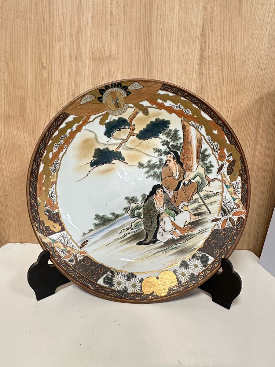 - Y06037 古九谷 金彩色絵 人物文細密絵付 花鳥図 大皿 飾皿 直径約45㎝ 古美術品 骨董品 アンティーク 時代物