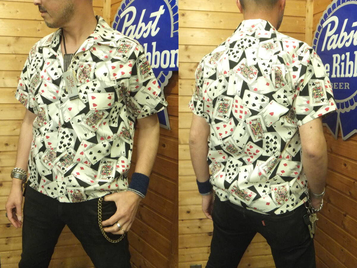 > 東洋スターオブハリウッド正規店 ロックンロールなトランプカード柄の半袖シャツ[コットン生地][黒][S]新品が送料無料で!! SH39496-119
