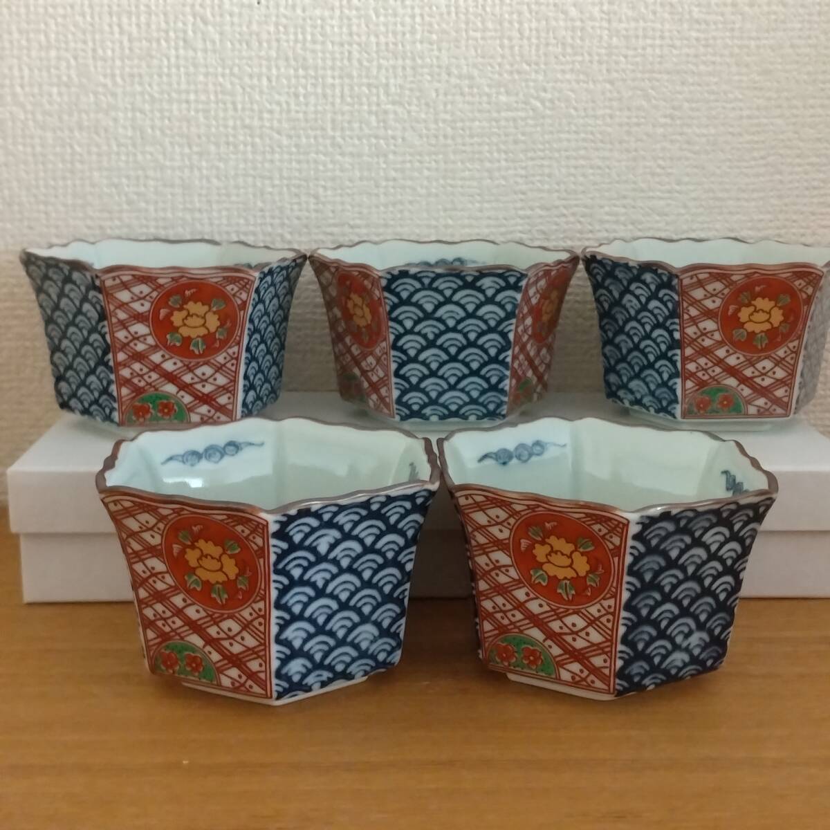 - 有田焼 波佐見焼 紀窯 金彩 六角小鉢 6角 5個 セット マルチカラー 箱なし
