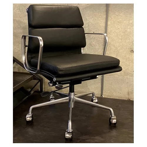 - 数量限定!イームズアルミナム ソフトパッドマネージメントチェア本革 BK(検アルミナムグループ,ミッドセンチュリー,ハーマンミラー,eames