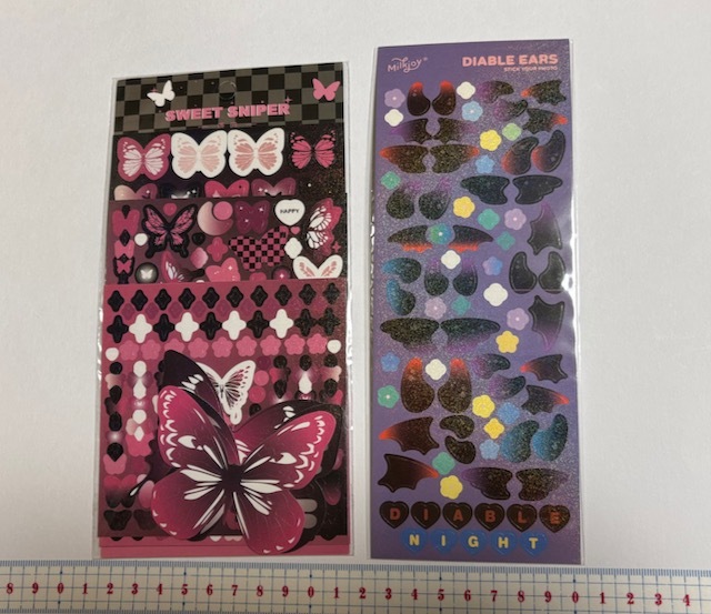 > ★海外ステッカー シール【TB11】シール ダークファンタジー 2品まとめて 蝶々・悪魔 日記・ジャンクジャーナル・コラージュに