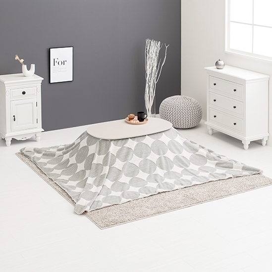 - こたつ+うす掛け布団 2点セット(ホワイトウォッシュ/グレー(丸)) カルミナ950WS+スノウ950SGY