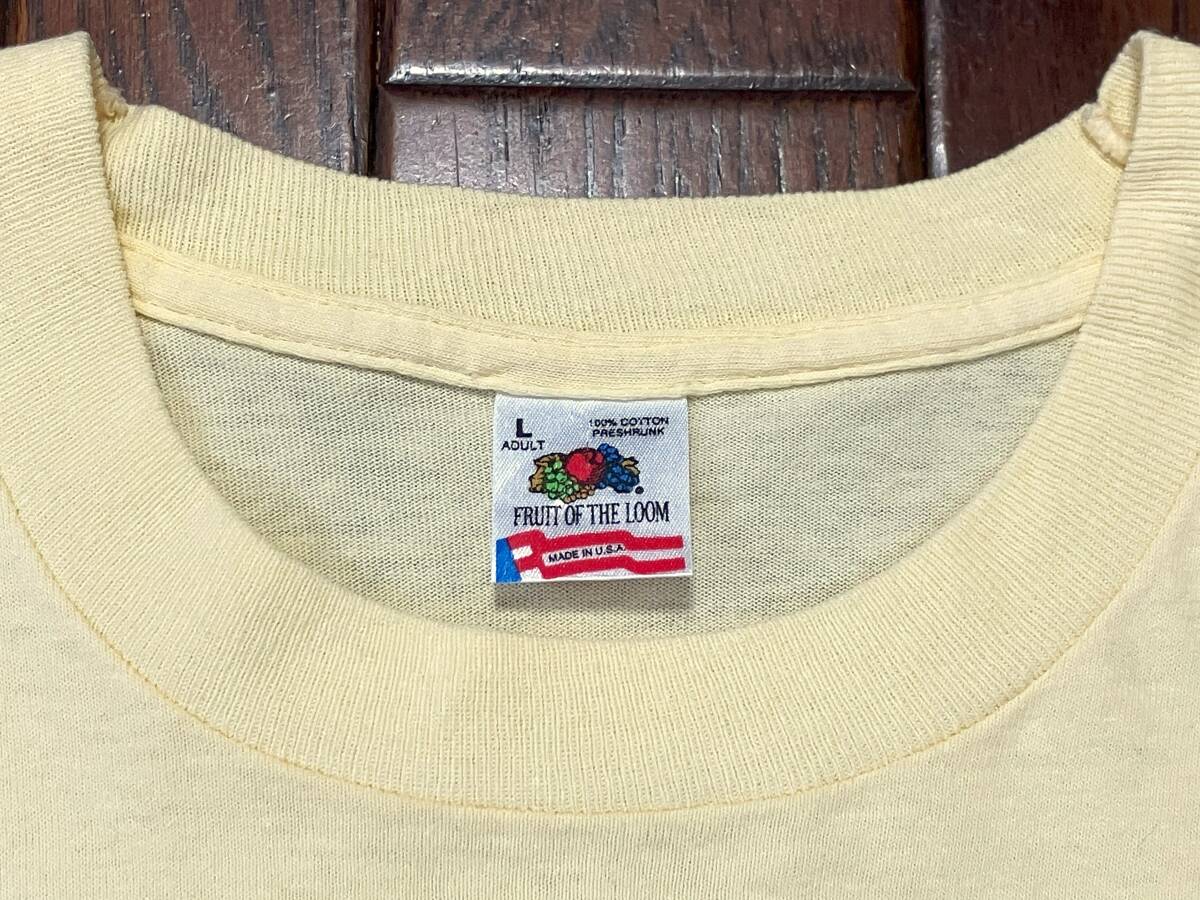 > USA製 90s ビンテージ フルーツオブザルーム FRUIT OF THE LOOM Tシャツ L ライトイエロー 黄色 無地 シングルステッチ アメリカ製 90年代