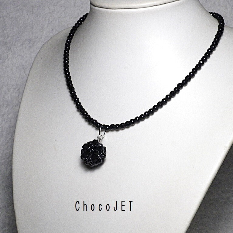 - ブラック・チェコビーズボールネックレス・ペンダント 丸玉くす玉黒色