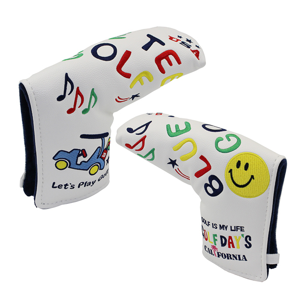 - 〇【PTB-ホワイト】ブルーティーゴルフ【スマイル&カート】ブレード型パター用ヘッドカバー BLUE TEE GOLF HC-012 送料無料