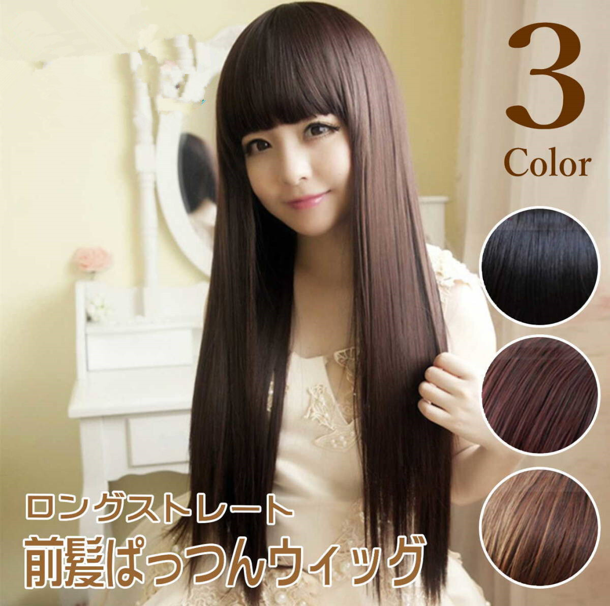 - ウィッグ 前髪ぱっつん ストレート ロング 茶色 ライトブラウン 茶髪 コスプレ 女装 耐熱 かつら つけ毛 ゆめかわ つむじ 自然 DJ718