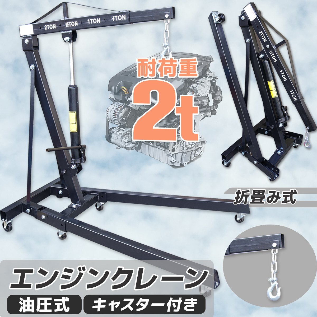> 【送料無料】★営業所とめ【ブーム4段調節可】2T 安定性UP 強化タイプ 耐荷重試験済 エンジンクレーン 荷物を吊ったままでスムーズに移動が
