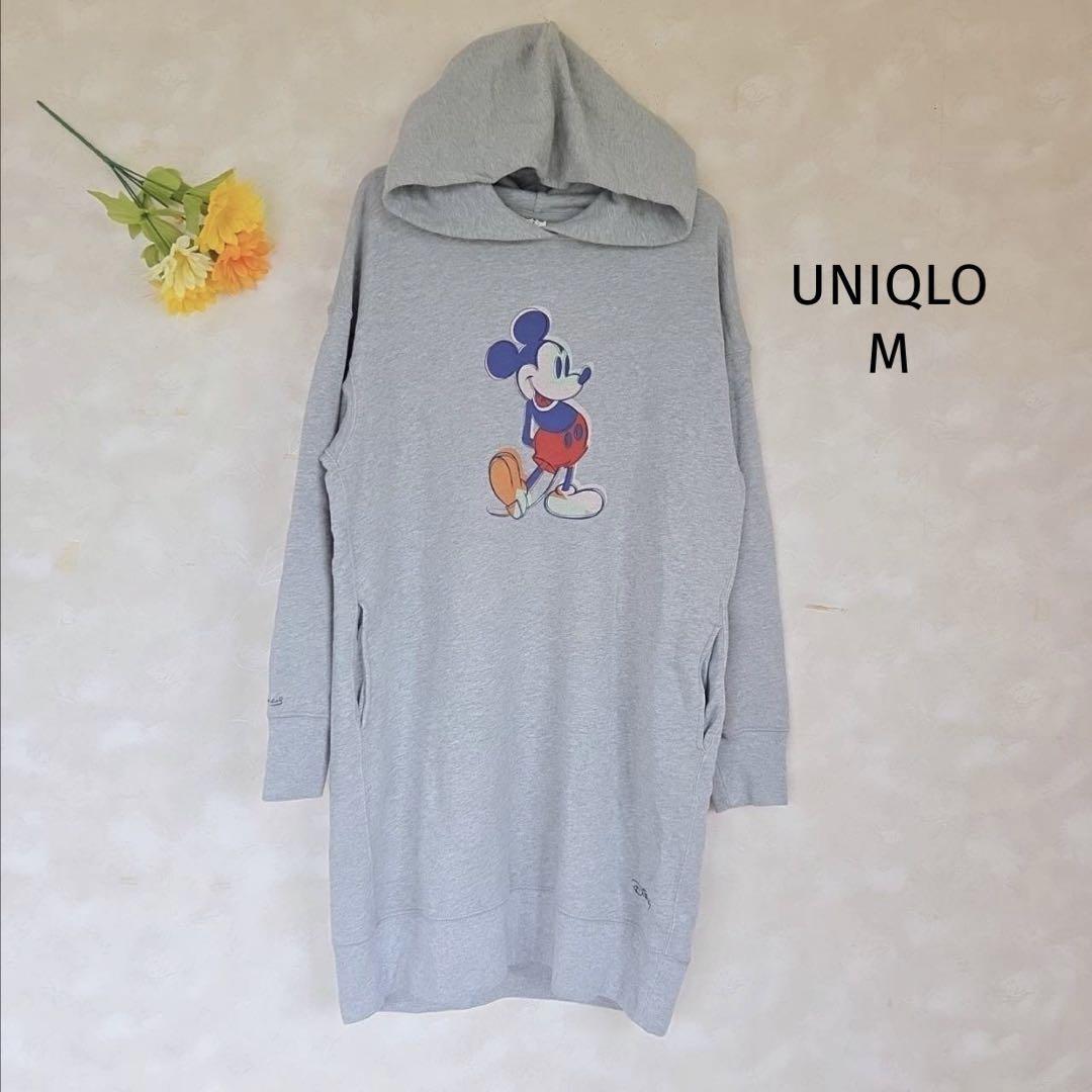 - ユニクロ UNIQLO パーカーワンピース【M】ミッキー 膝上丈 グレー