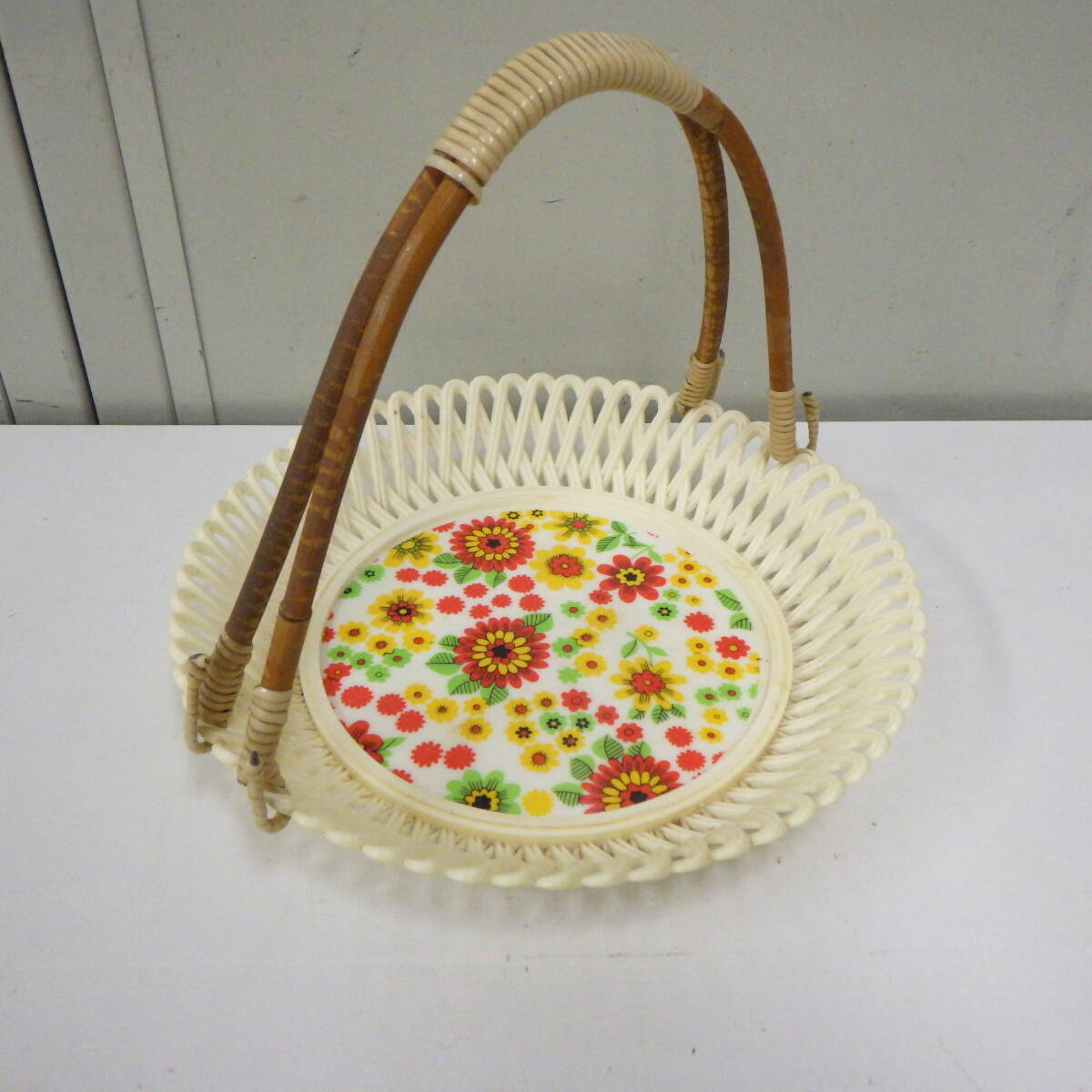 - 昭和 レトロ 花柄 プラスチック かご 篭 カゴ