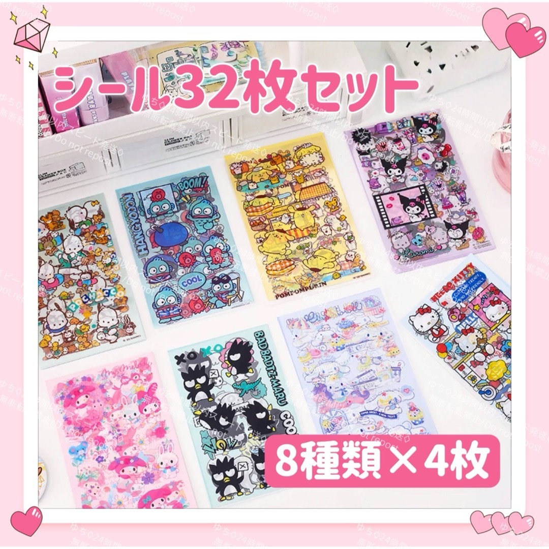 - 海外限定 サンリオ シール ステッカー 24枚 セット PET 防水 デコ コラージュ アレンジ 可愛い