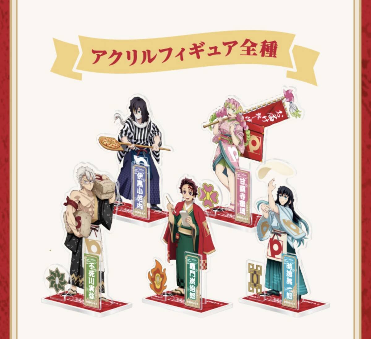 - ピザーラx鬼滅の刃 オリジナルアクリルフィギュア 全5種セット 炭治郎 無一郎 不死川 小芭内 蜜璃