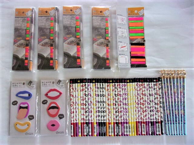 > C-646 ヤマコシ/クーリア/カミオジャパン/他 おしゃべりふせん 蛍光ふせん紙 鉛筆(2B/HB) 文具/セット/バラエティー/筆記具/メモ/伝言