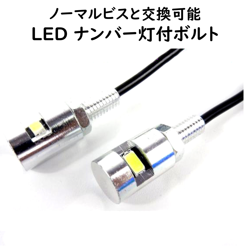 - LED内蔵ナンバー灯ボルト ライセンスプレート ナンバーボルト 2本セット 12V車用 COBチップオンボード 白