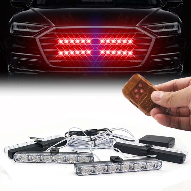 - リモコン式 JAPANパトカー回転灯 4連 日本警察LED警告灯 レッドLEDが点滅フラッシュ リモコンで点灯パターンを選択ok トラブル時の威嚇に