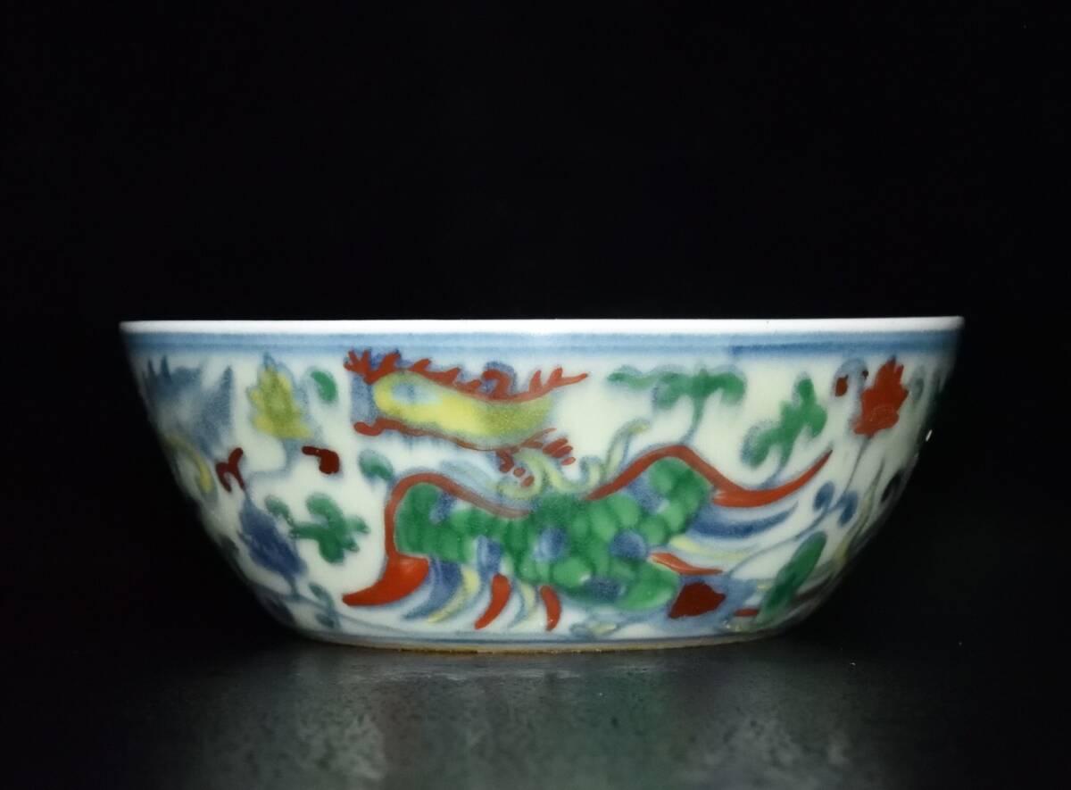 > 【仁】『明・成化年製款・古陶瓷品・斗彩・鳳紋・供碗・陶藝』極細工 古董品 中国古玩 古美術 古美味 時代物 旧家蔵出