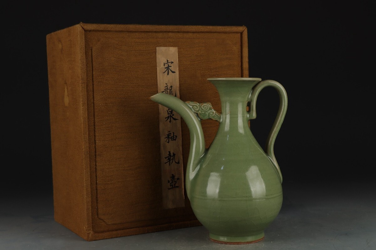 - 「宋 龍泉窯 陶磁器 緑釉執壺」染付 置物 擺件 古賞物 中国古美術 旧蔵出