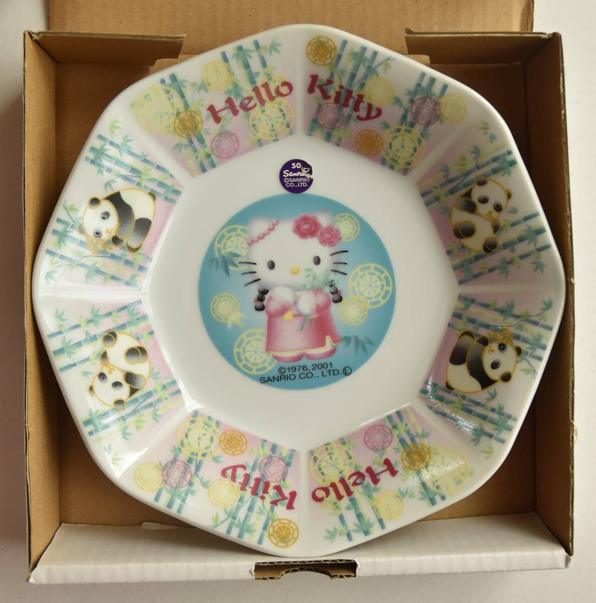 - サンリオ ハローキティ 飲茶がいっぱい 中華皿 八角皿 絵皿 パンダ チャーハン皿 陶磁器 レア品 超レア 激レア