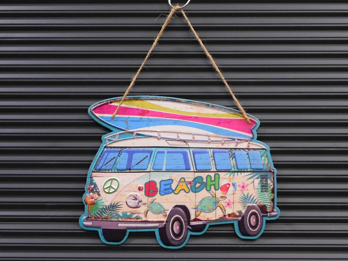 - ◆送料\185◆【BEACH Wagon】※《アンティークエンボスプレート》 ワーゲンバス アメリカン雑貨 メタルサイン エンボス看板 ブリキ看