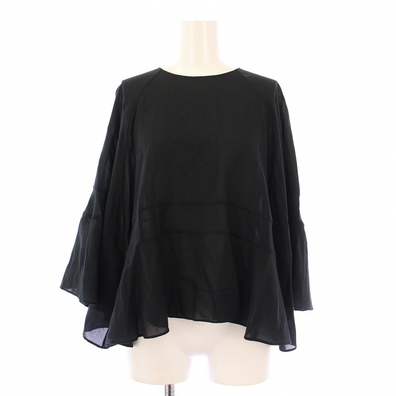 > アドーア ADORE ドライキュプラブラウス シャツ フリル 七分袖 クルーネック 無地 38 黒 ブラック 531-3210705 /BB レディース