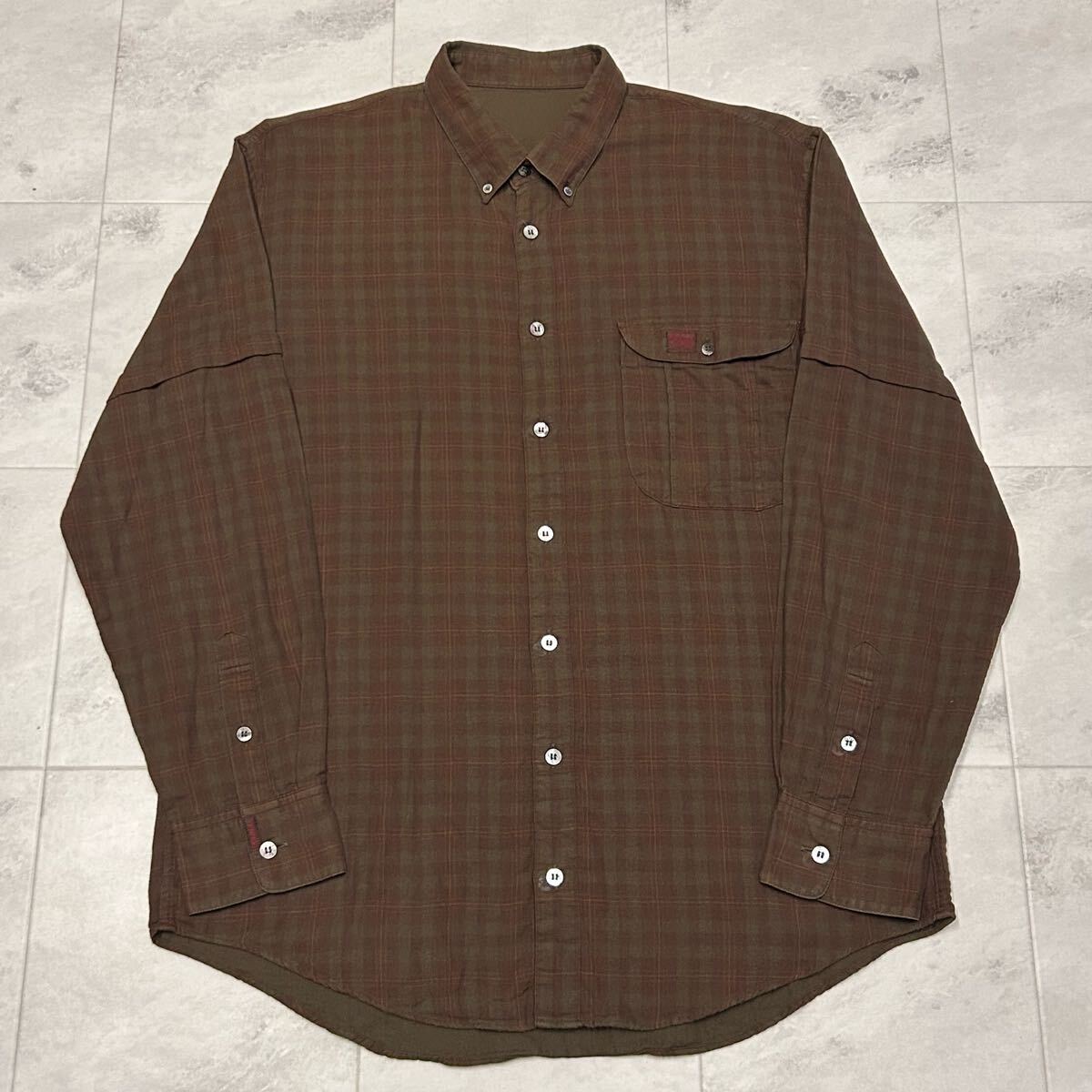 - PAPAS パパス チェック 再構築 ドッキング 長袖シャツ 綿100%