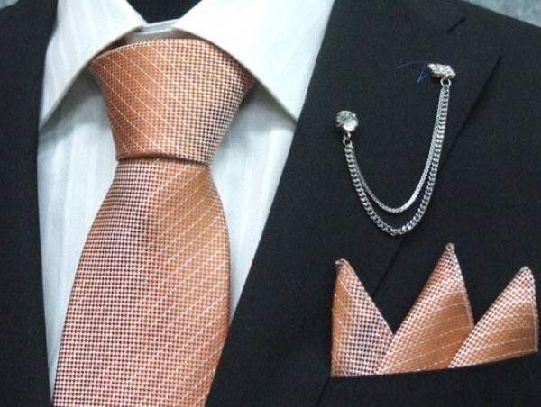 - ラメ入りネクタイ ポケットチーフ付 オレンジ シルク100% 日本製 結婚式 メール便可 PTT-204