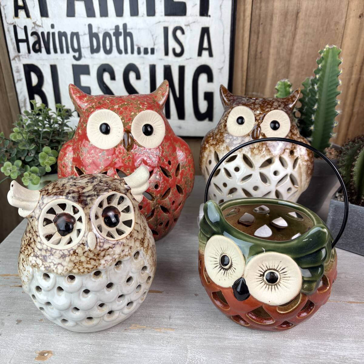 - 送料無料、インテリア雑貨、陶器キャンドルふくろう4点セット置物ディスプレイ、キャンドルカップ