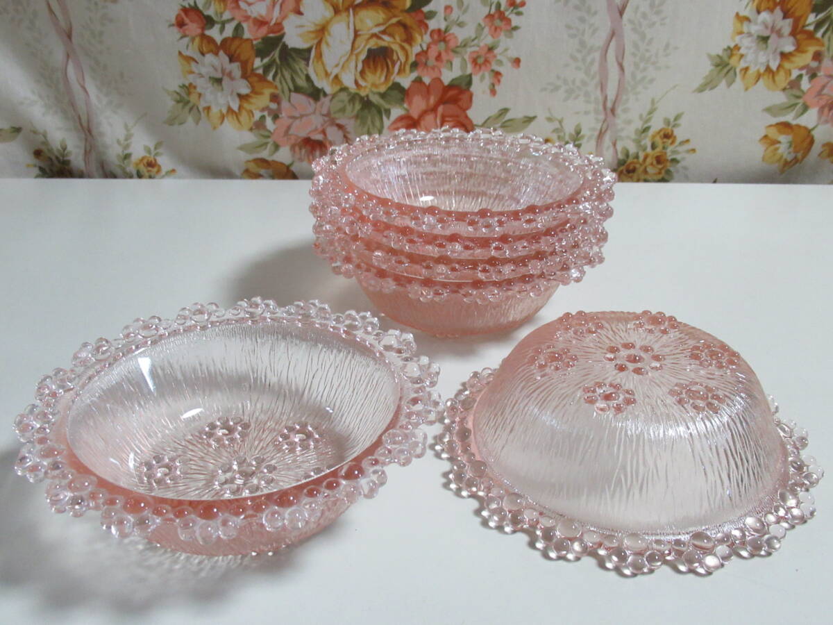 - R7 06★アデリアピコット 可愛いピンク フルーツ皿 6個セット 昭和レトロ 硝子 サラダボール/小鉢