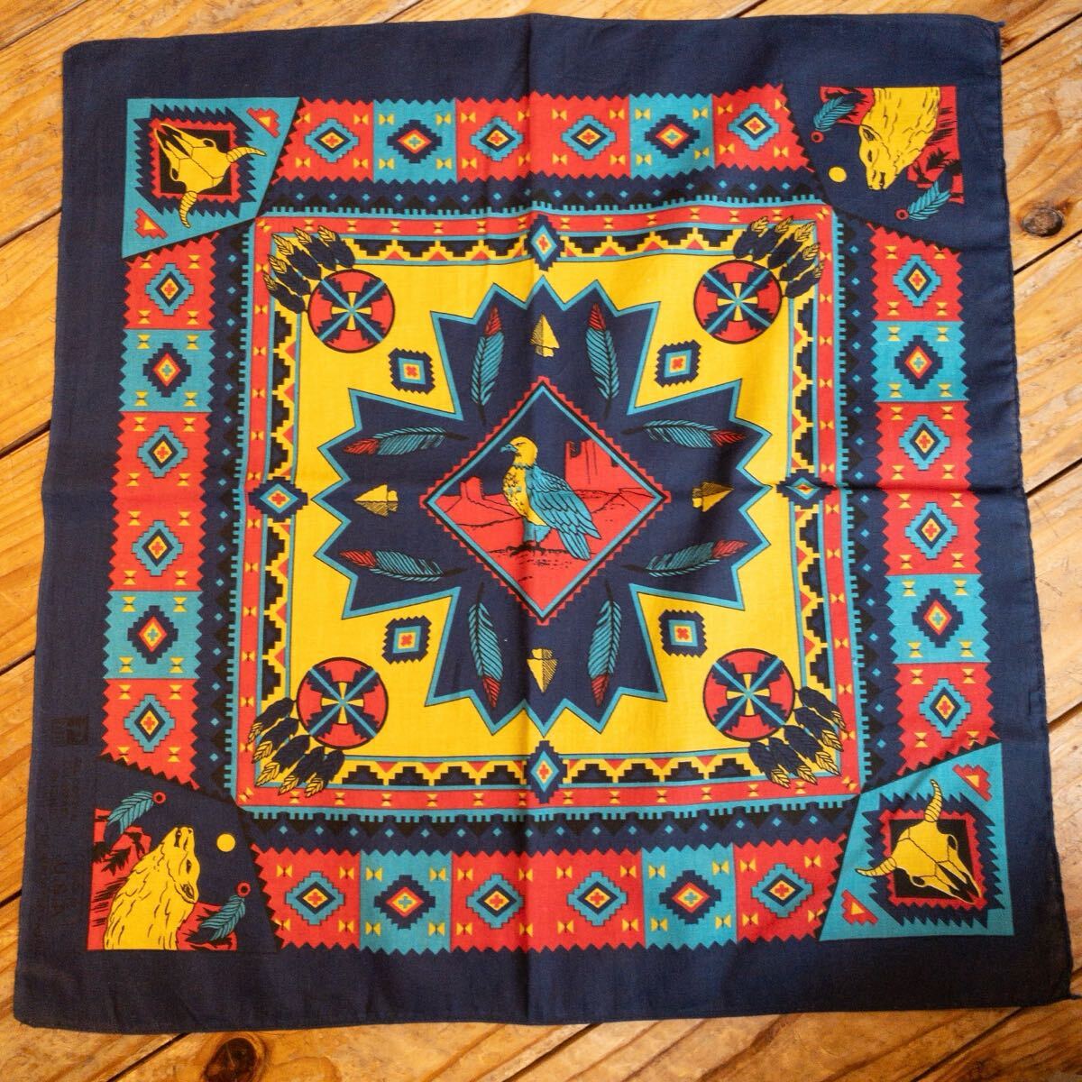 - 送料無料 Vintage バンダナ ハンカチ ネイティブ柄 アメリカ仕入れ USA製 Cotton100% 雑貨 カラフル マルチカラー ヴィンテージ A1614