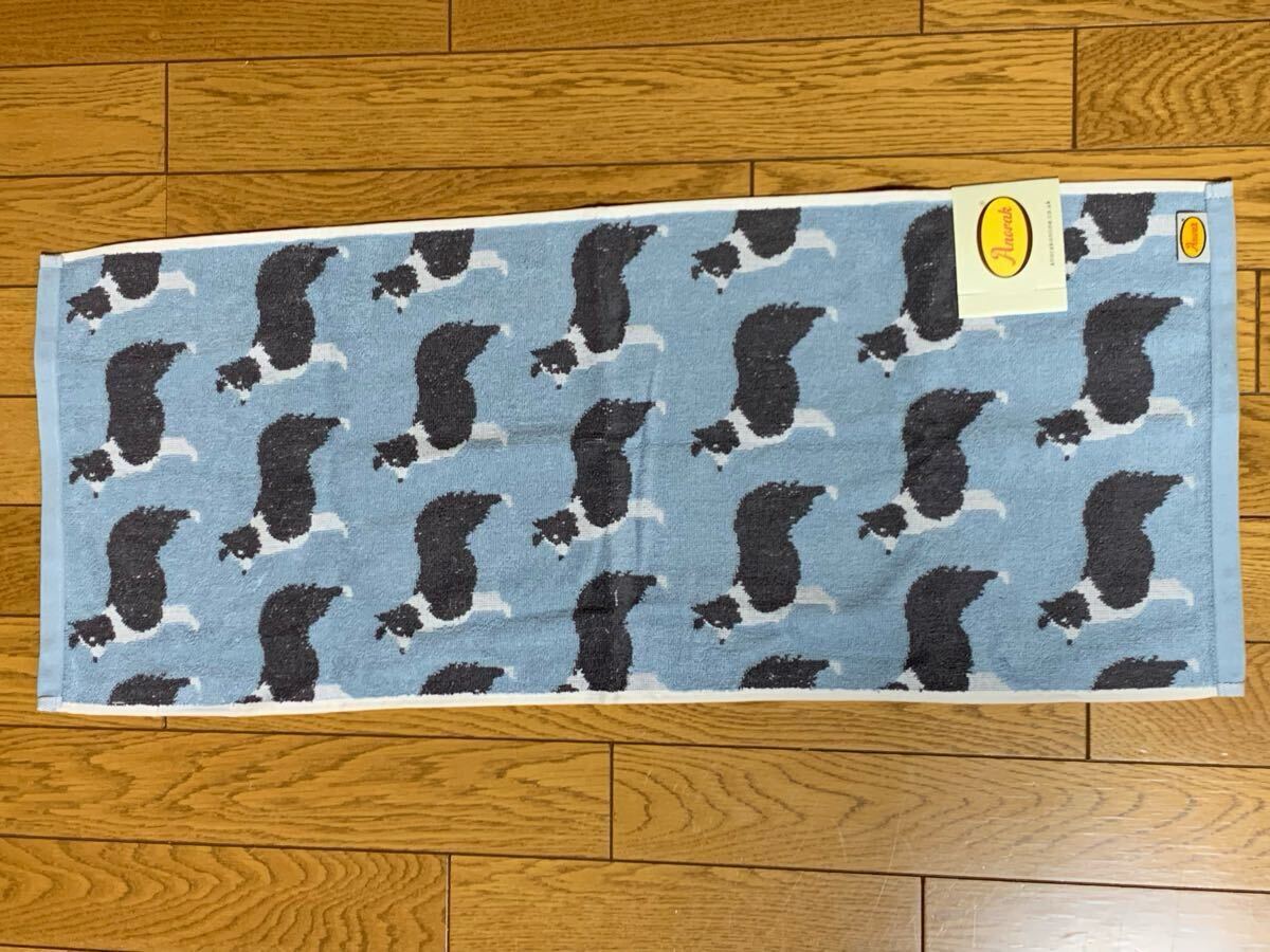 - 丸眞 ANORAK アノラック フェイスタオル コリーズ ポルトガル製 33×80 北欧 犬柄 ボーダーコリー 水色 厚手 タオル