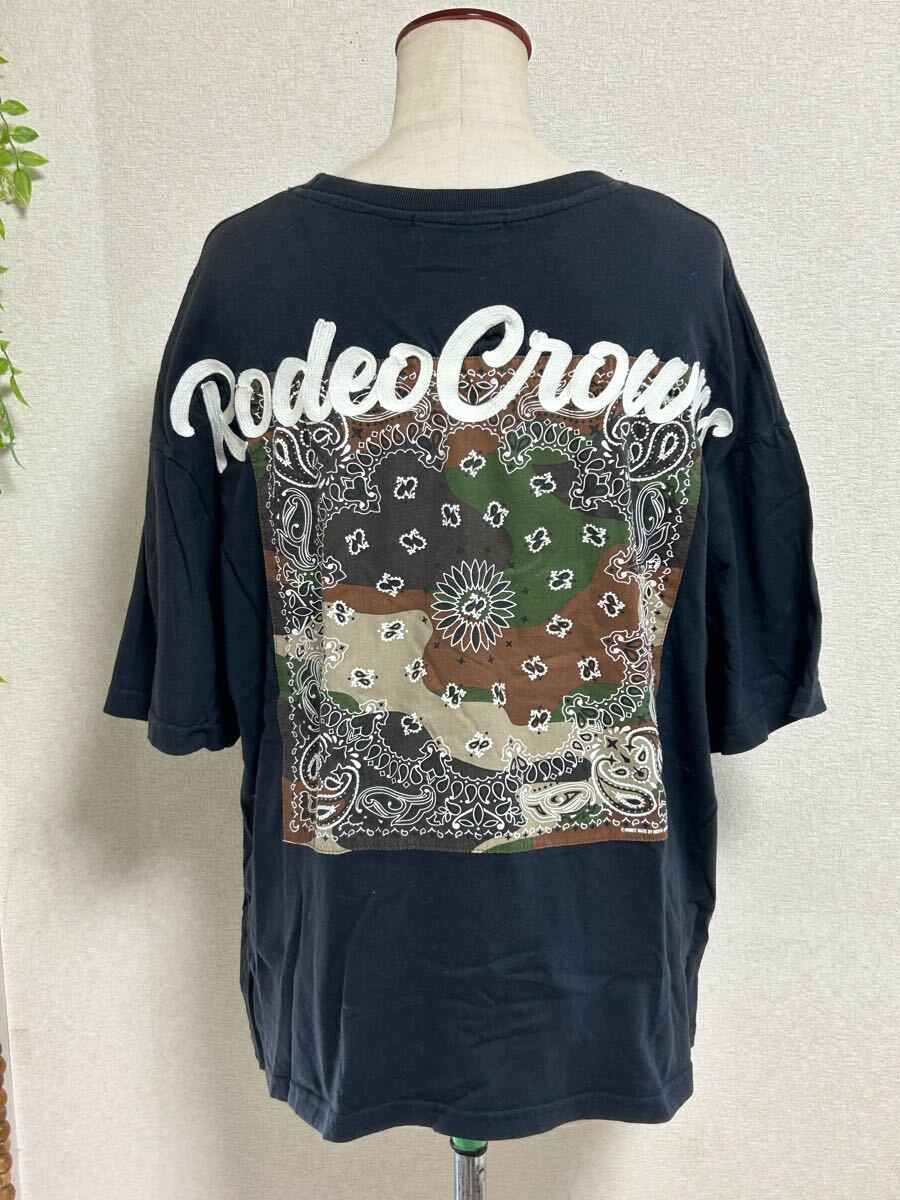 - 【RODEO CROWNS★ロデオクラウンズ】バンダナゼッケン風・刺繍ロゴ入りTシャツ・墨黒・Mサイズ