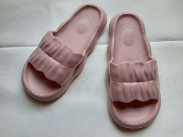 - 未使用 モスピンク スリッパ 軽量 フリルデザイン サンダル 防水 厚底 静音