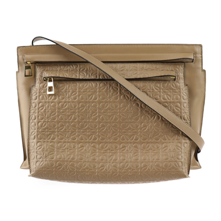 > 美品 ロエベ リピート アナグラム ショルダーバッグ 109 55 M33 ブラウン クロスボディ ダブルポーチ【本物保証】