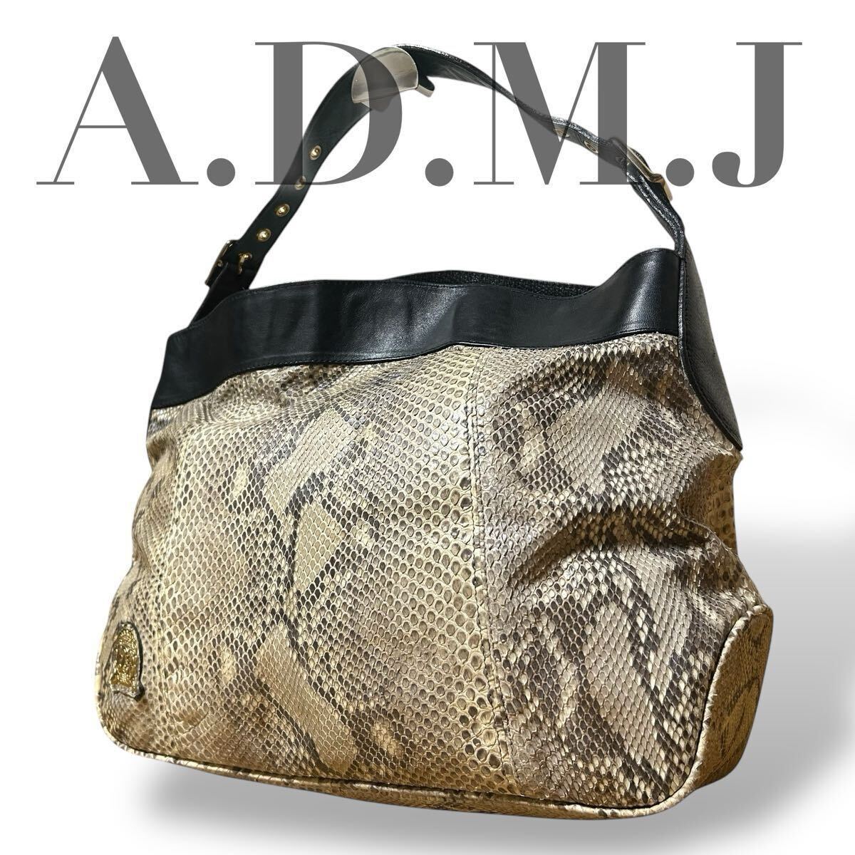 - 美品 ADMJ エーディーエムジェイ ワンショルダーバッグ ハンドバック パイソン A4収納 肩掛け 手さげ レディース 鞄