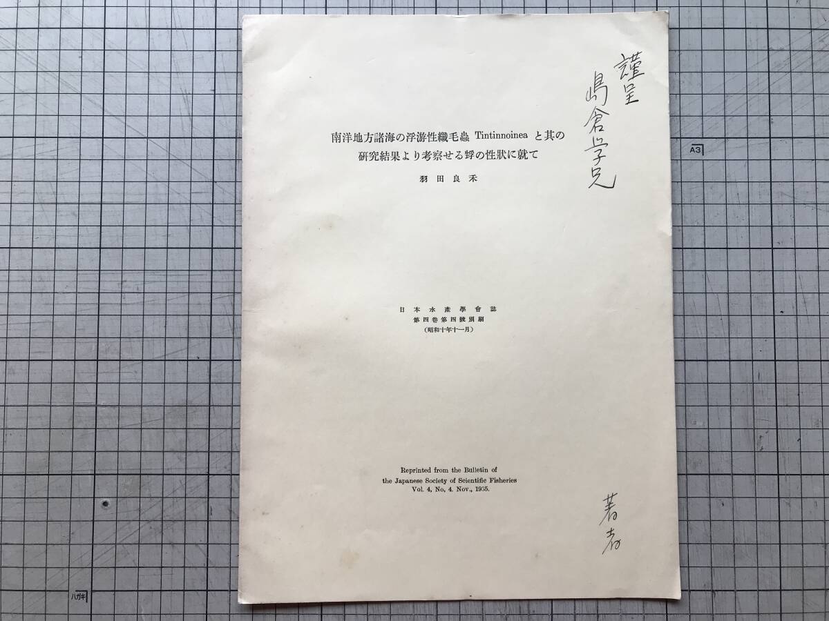 - 『南洋地方諸海の浮游性繊毛蟲 Tintinnoinea と其研究結果より考察せる の性状に就て 日本水産学会誌 別刷』 羽田良禾 1935年刊 00311