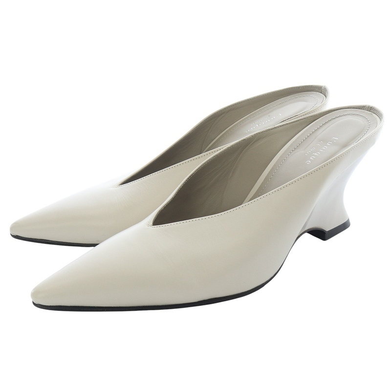 > リュニック L'unique et moi ミュールパンプス ポインテッドトゥ レザー ハイヒール 23.5cm ライトグレー /SR23 レディース