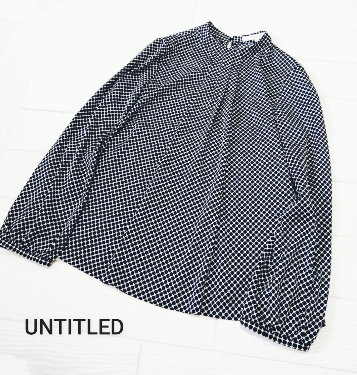- UNTITLED*アンタイトル*フロントタック*ボウタイ風長袖ブラウス*モノトーン総柄*洗えます