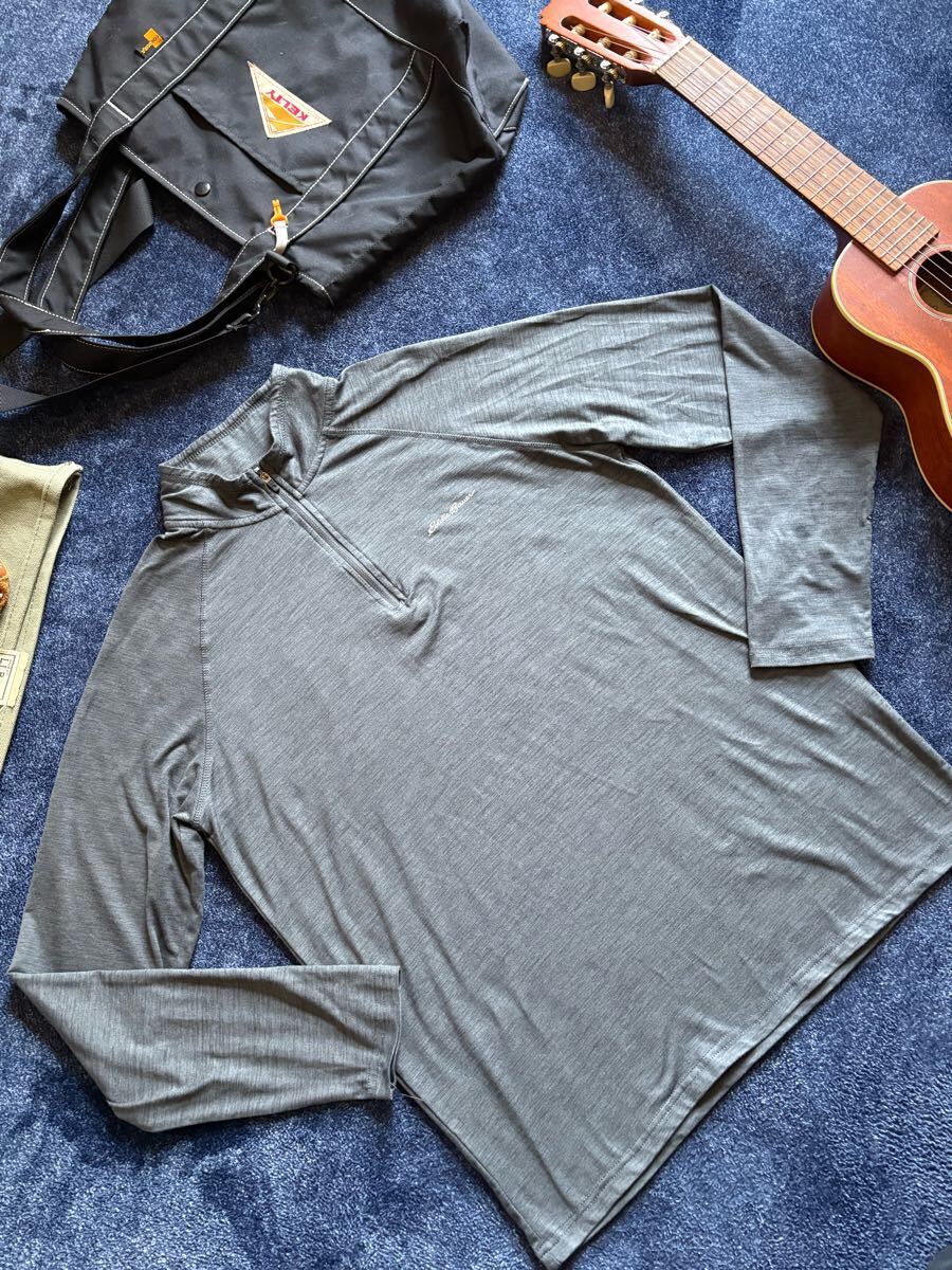 - 超美品 定価12,100円 エディバウアー Eddie Bauer 高品質ストレッチ素材 FREEDRY ハイネック アウトドア ジップ 長袖シャツ sizeM グレー系
