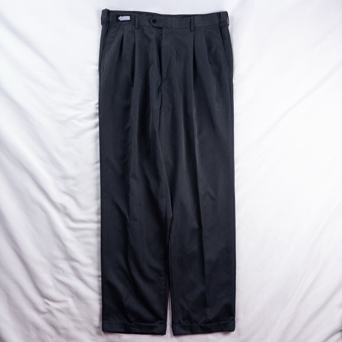 > US Vintage 00s SAVANE ポリエステル ツイル ツータック 光沢 とろみ ドレープ グレー 灰色 ワイド ドレス スラックス トラウザーズ