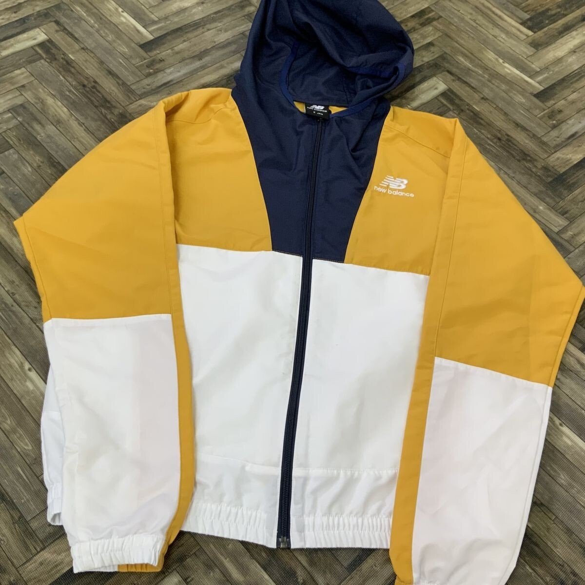> HY332 ニューバランス スインドブレーカー ネイビー イエロー ホワイト S
