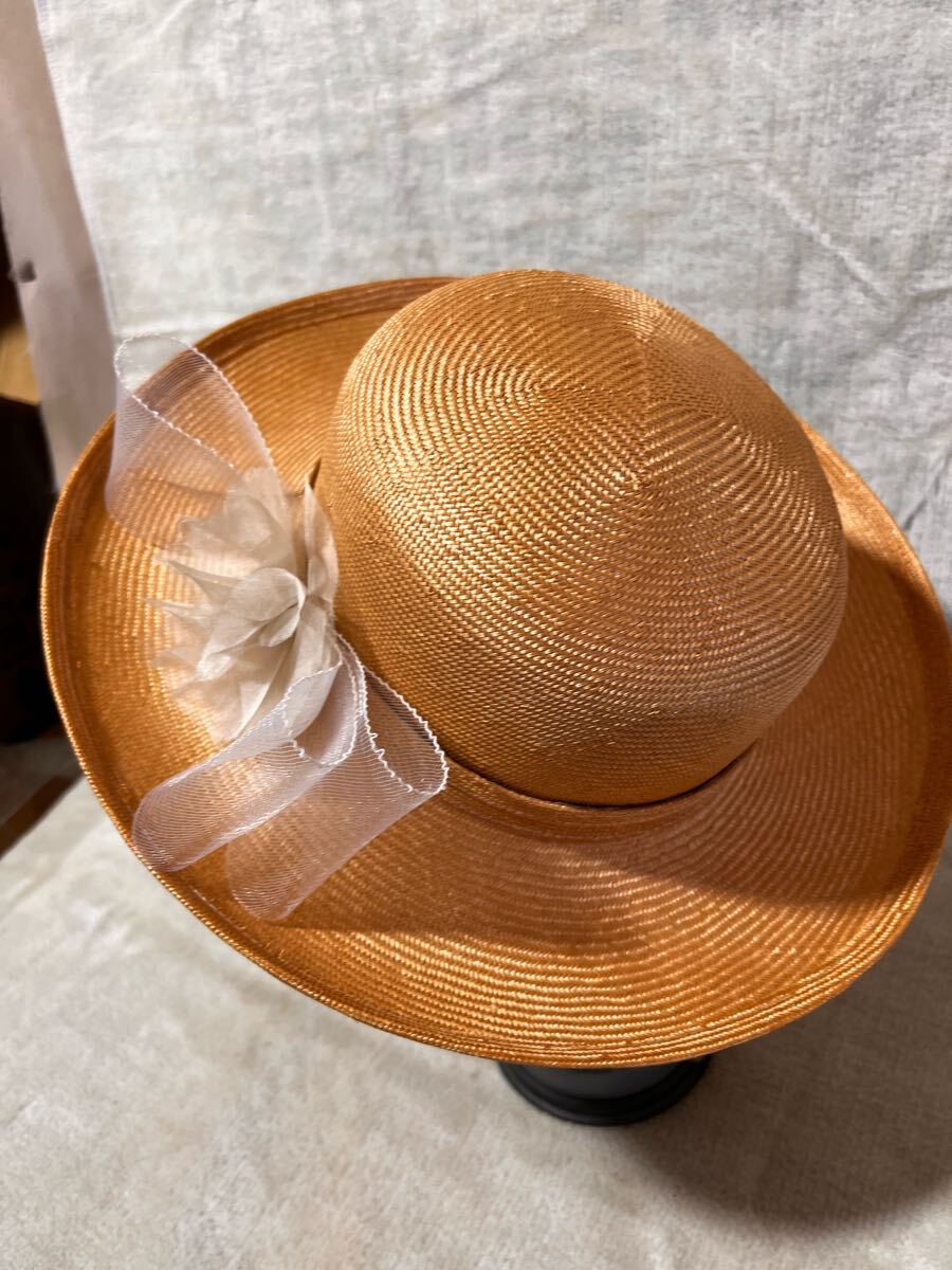 - C2568 HM Chapeau エイチエム・シャポー 麦わら帽子 帽子 ストローハット 天然草 オーガンジー リボン ユーズド