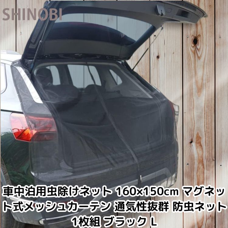 - 車中泊用虫除けネット 170×150cm マグネット式メッシュカーテン 通気性抜群 防虫対策 軽自動車・SUV対応 簡単取付 ブラック Lサイズ